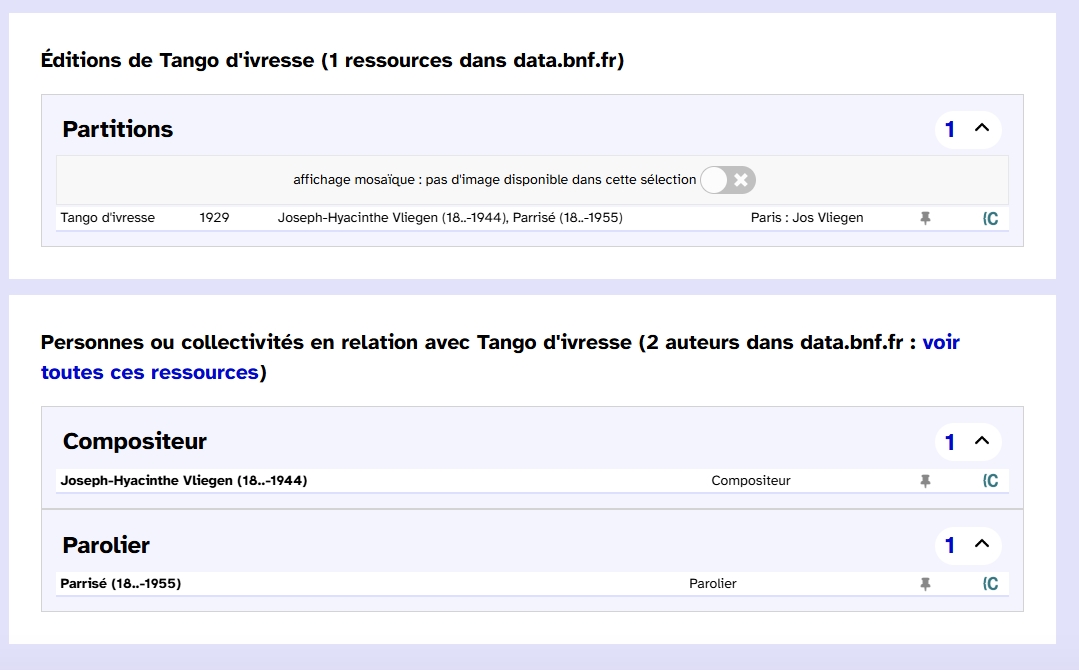 Ein Tango, der wohl in den 1930er Jahren sehr erfolgreich war – „Un très grand succès“ – Tango D’Ivresse – Chanson argentine – von Joseph-Hyacinthe Vliegen. Mario Maciocchi hat diesen Tango für Mandolinenquartett / Mandolinenorchester bearbeitet und 1931 in der Zeitschrift L’Estudiantina veröffentlicht.